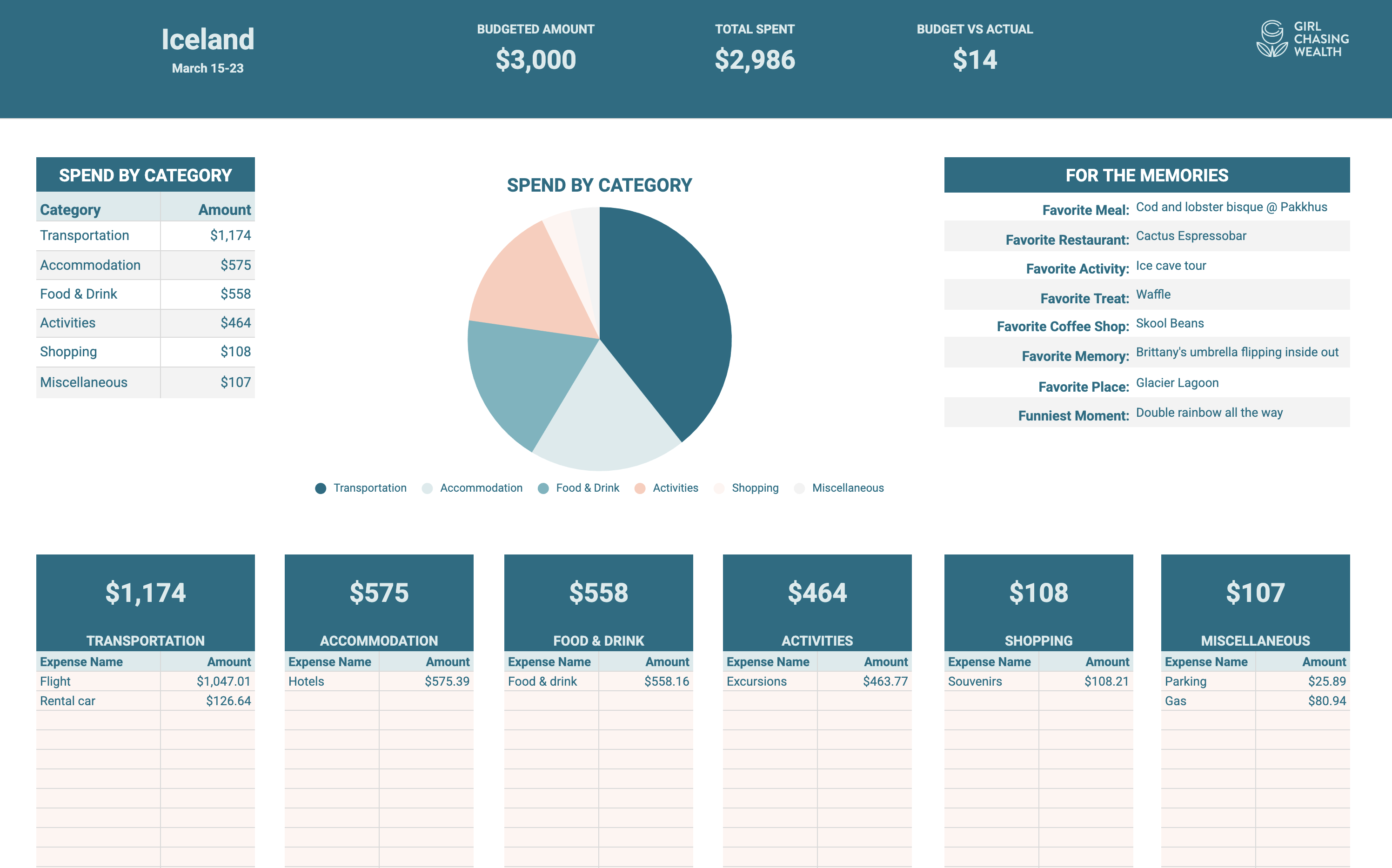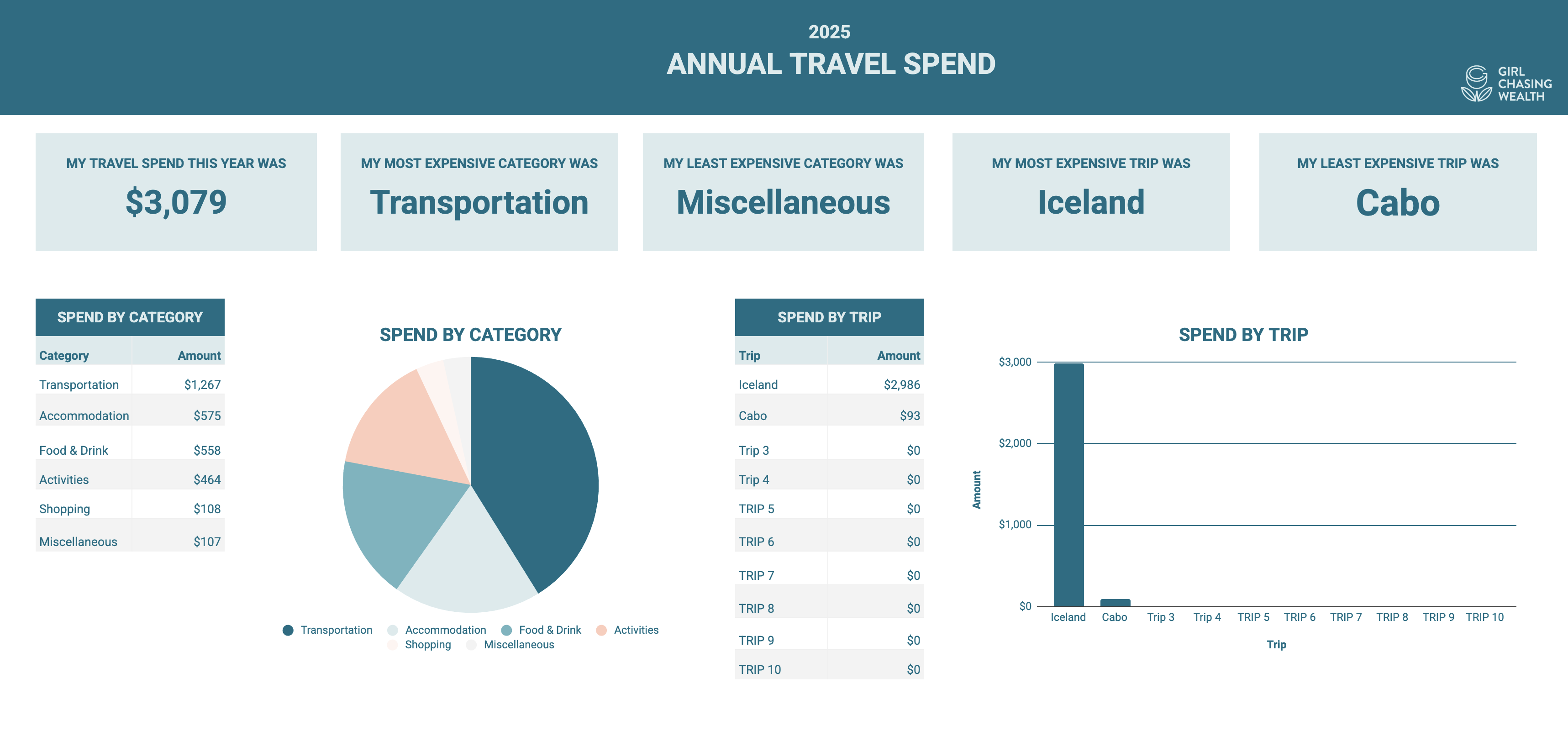 Please read the Terms of Use for the Program carefully and in their entirety before purchasing and using Travel Spending Tracker (hereinafter referred to as the “Program”). The Program and its content are owned by Alex Morales and Girl Chasing Wealth LLC.